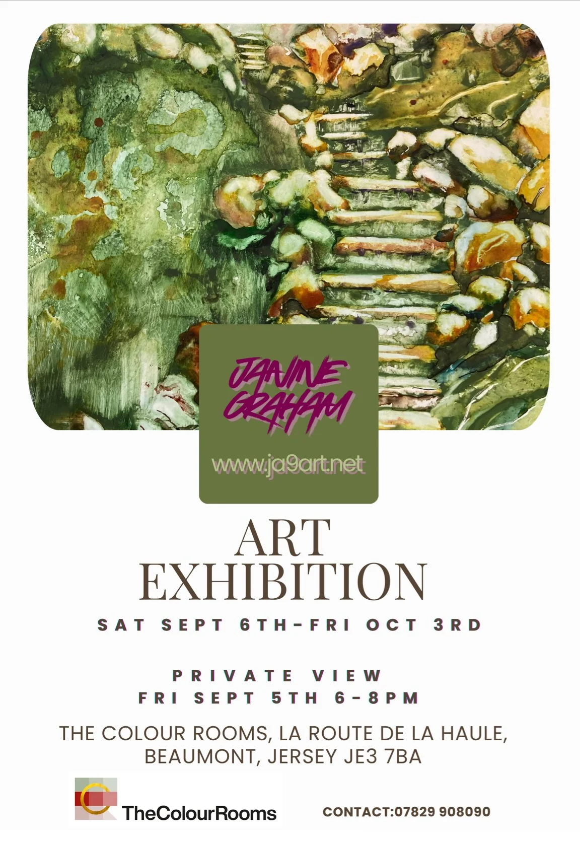 Join us this September, for our next exhibiting artist, showcasing the work of multi-medium painter, Janine Graham. Her fresh and unique style was inspired by the cliff paths of Jersey.