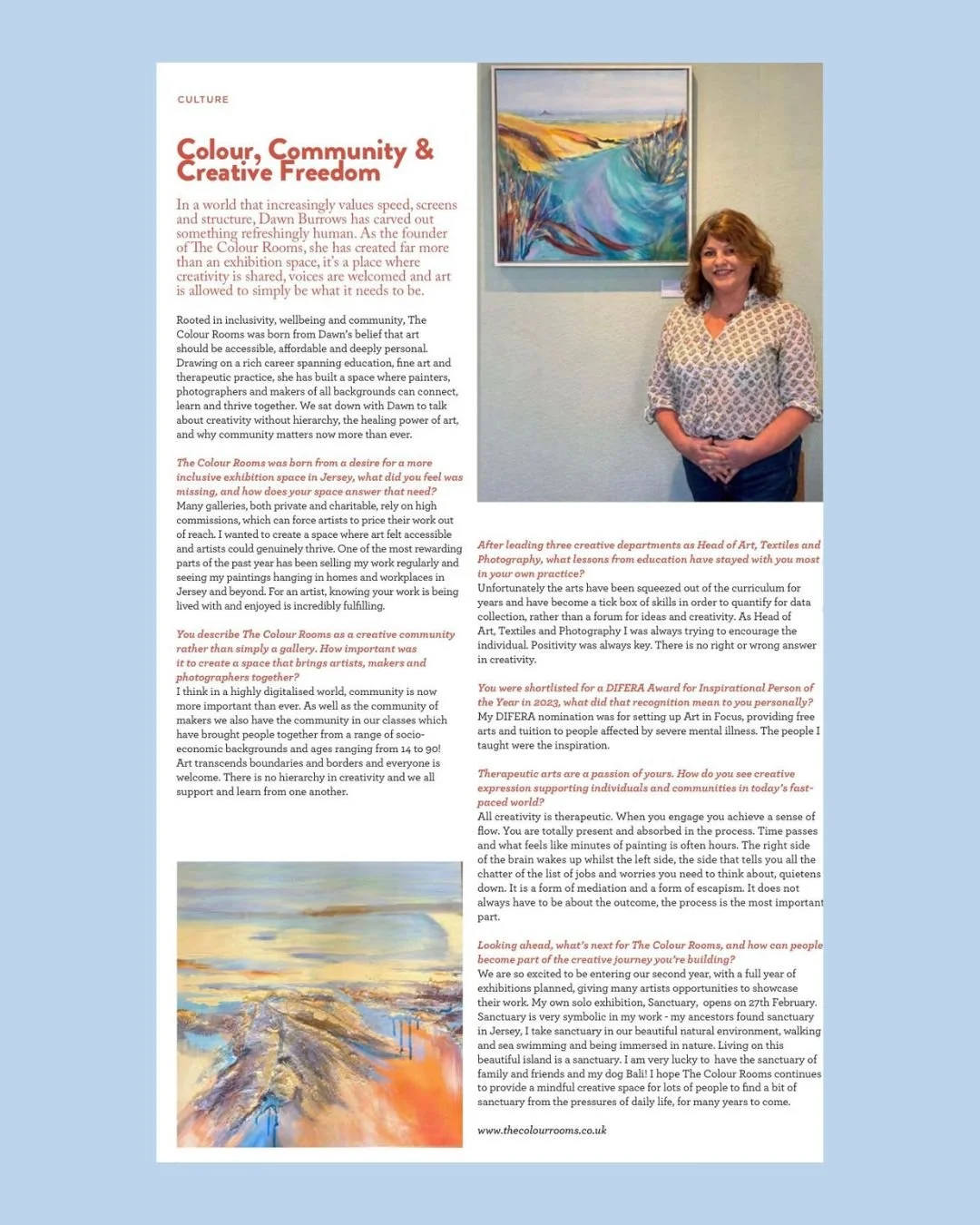 Born out of a desire for a more inclusive arts exhibition space in Jersey, 'The Colour Rooms' offers a platform for artists to showcase their work to a wide public audience.
